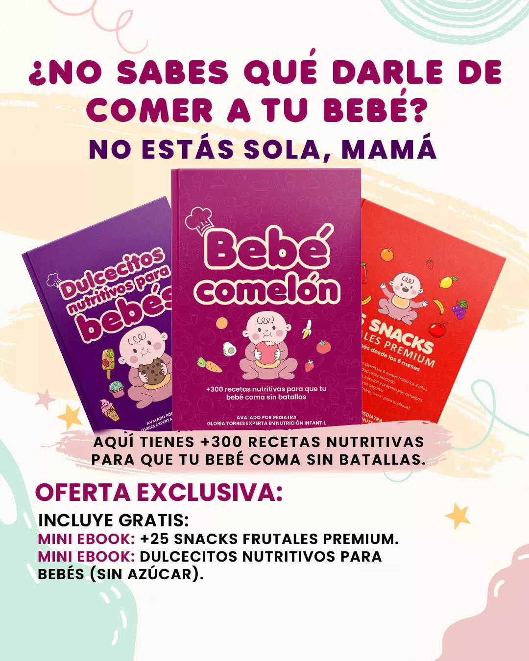 Bebé Comelón es una guía práctica creada para ayudarte a alimentar a tu bebé con seguridad, confianza y sin estrés. Incluye más de 300 recetas nutritivas, organizadas por etapa, con ingredientes fáciles y preparaciones claras para que sepas exactamente qué ofrecer y cómo hacerlo, sin dudas ni peleas a la hora de comer.